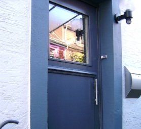 Haustüre nach altem Vorbild; nach heutigem Stand der Technik; Lackierung innen weiß; Außen Anthrazit; Wasserlack; Beschläge Edelstahl; inkl. Dreifachverriegelung; Maße: 220 x 110 x 15 cm