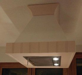Diese Abzughaube speziell für bestehende Landhausküche; MDF; farbig lackiert; Seitenflächen verputzt; Maße: 80 x 60 x 70 cm