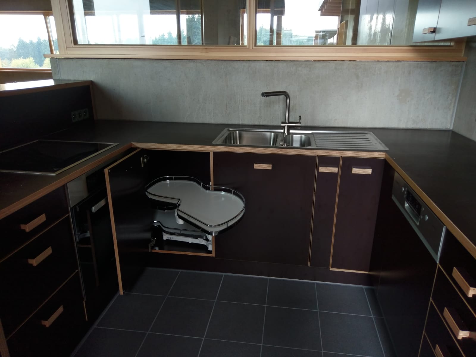 Küche in L-Form mit Mittelteil